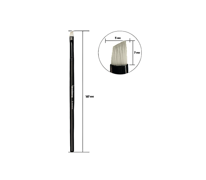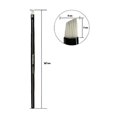 Plona, kampuota šerelių forma leidžia lengvai formuoti apatinę antakio liniją, kontūrus, „uodegėlę“, užpildyti spalvą, atlikti potėpius bei įvairias dažymo technikas. Teptukas puikiai tinka tiek antakių dažams, tiek henna technikai.