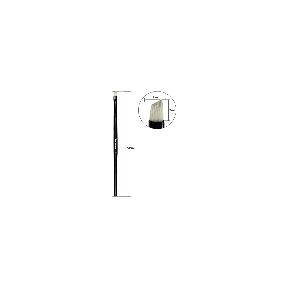 Kampuotas antakių teptukas su elastingais nailoniniais šereliais, skirtas antakių dažymui, hennai, kontūravimui ir tiksliam formavimui. Tinka profesionalams ir pradedantiesiems.
