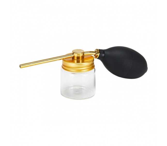 Purkštukas leidžia greitai ir patogiai užtepti talką ant odos, kuris neutralizuoja perteklinį prakaitą, padeda išvengti odos dirginimo ir žymiai palengvina plaukų likučių pašalinimą po kirpimo. Stiklinis talpyklos rezervuaras sujungtas su grūzda metaliniu auksiniu elementu. Kompaktiška ir lengva buteliuko forma daro šį įrankį idealiu tiek profesionaliems kirpėjams, tiek namų naudojimui.