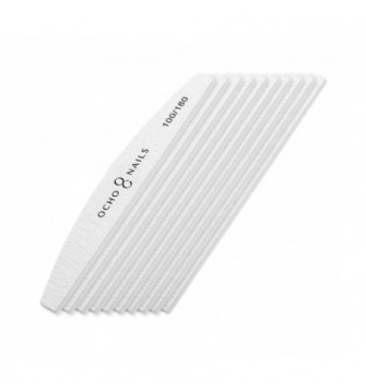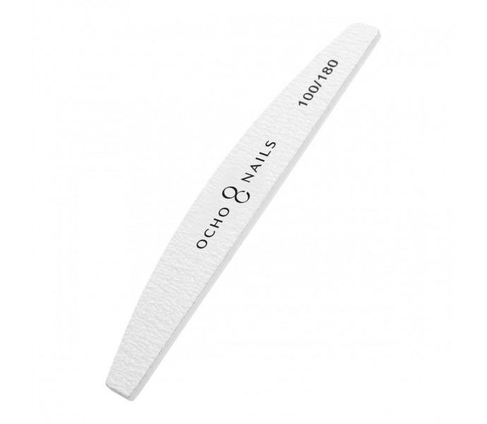 Profesionali Ocho Nails nagų dildė 100/180 gradacijos, pusmėnulio formos – tai būtinas įrankis kiekvienos nagų stilistės darbe. Vidutinės abrazyvumo gradacijos dildė skirta dirbtinių nagų formavimui ir natūralios nago plokštelės paruošimui prieš manikiūro procedūrą.