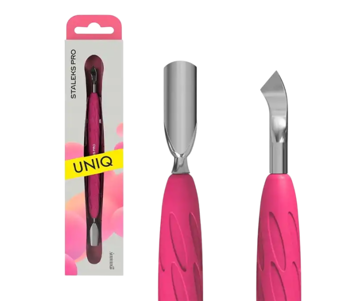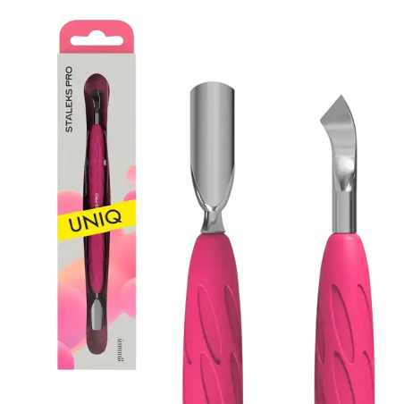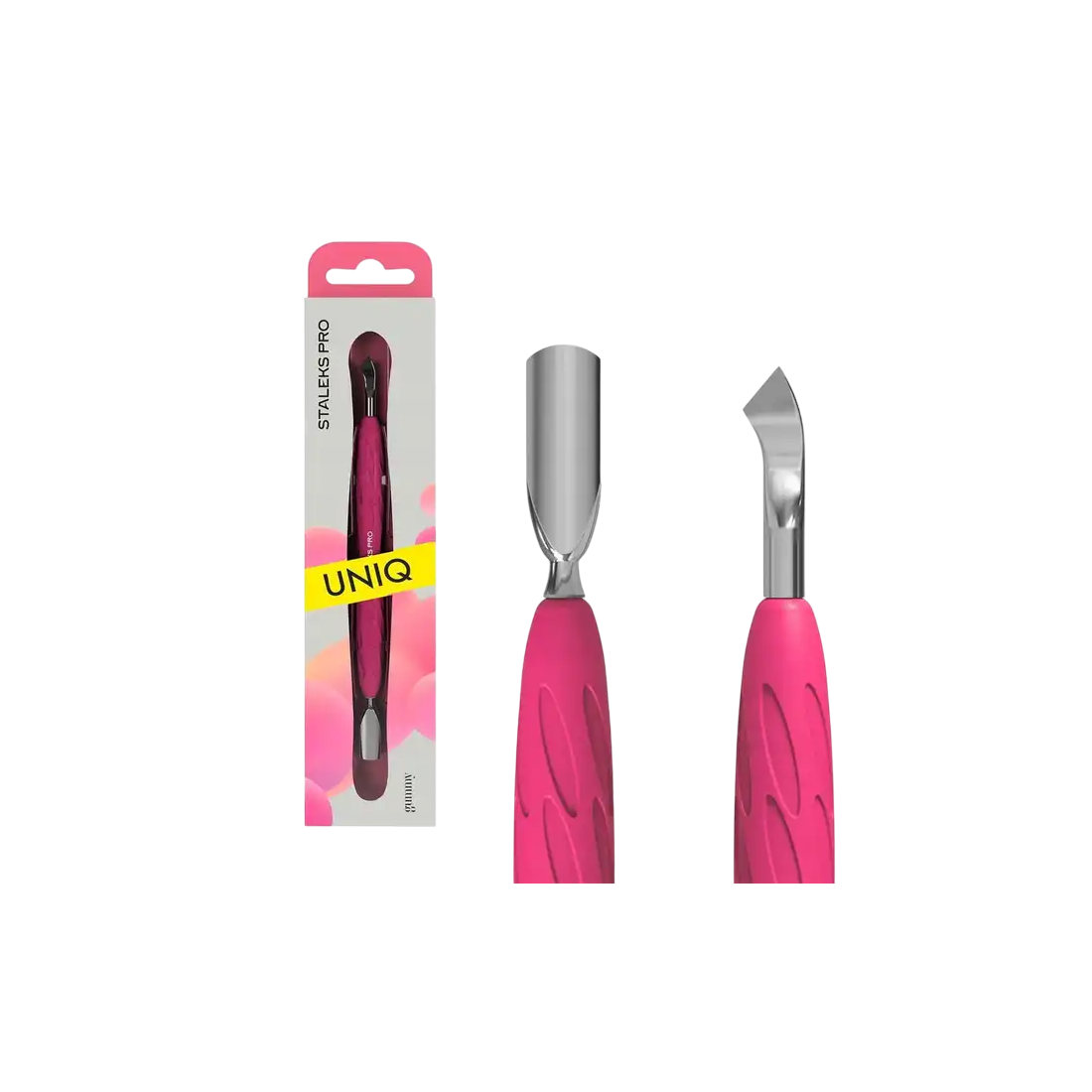 Staleks GUMMY PQ-10/4.2 stūmiklis – su silikonine rankena ir plienine darbine dalimi, patogiam ir tiksliam manikiūrui ar pedikiūrui.