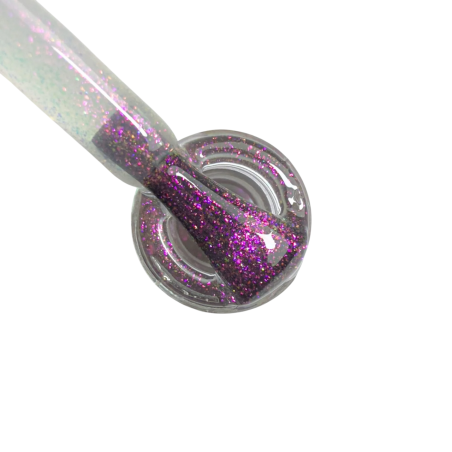 Viršutinis gelinio lako sluoksnis su rožiniu blizgesiu, dar vadinamas Pink Shimmer Top Coat, naudojamas kaip paskutinis manikiūro žingsnis, siekiant užtikrinti ilgalaikį blizgesį ir apsaugoti spalvotą gelinį laką. Šis topas nagams suteikia subtilų, elegantišką rožinį shimmer efektą, kuris išryškina spalvą ir suteikia rafinuotą, švytintį rezultatą.