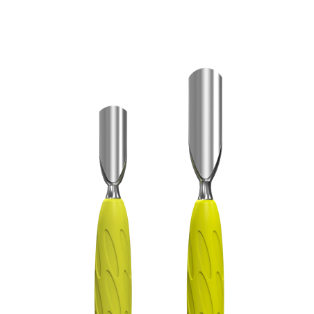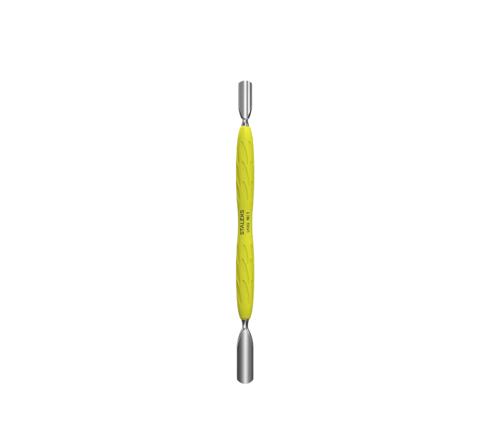 GUMMY UNIQ manikiūro atstūmėjas su silikonine rankena – profesionalus odelių atstūmimo įrankis iš nerūdijančio plieno. Tinka sterilizacijai autoklave, patogus ir ilgaamžis.