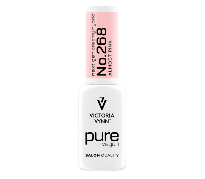 PURE VEGAN CREAMY HYBRID 268 Almost Pink – aukštos kokybės kreminės konsistencijos hibridinis gelinis lakas, užtikrinantis lengvą dengimą, ilgai išliekantį spalvos sodrumą ir intensyvų „glassy shine“ blizgesį.