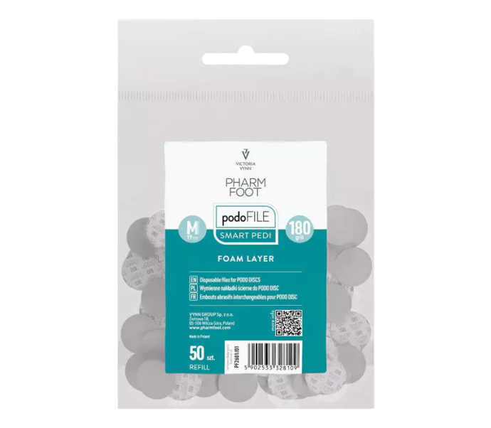 Pododisko abrazyvai maišelyje PharmFoot, M dydis, Foam layer, 180 gritų, 50vnt
