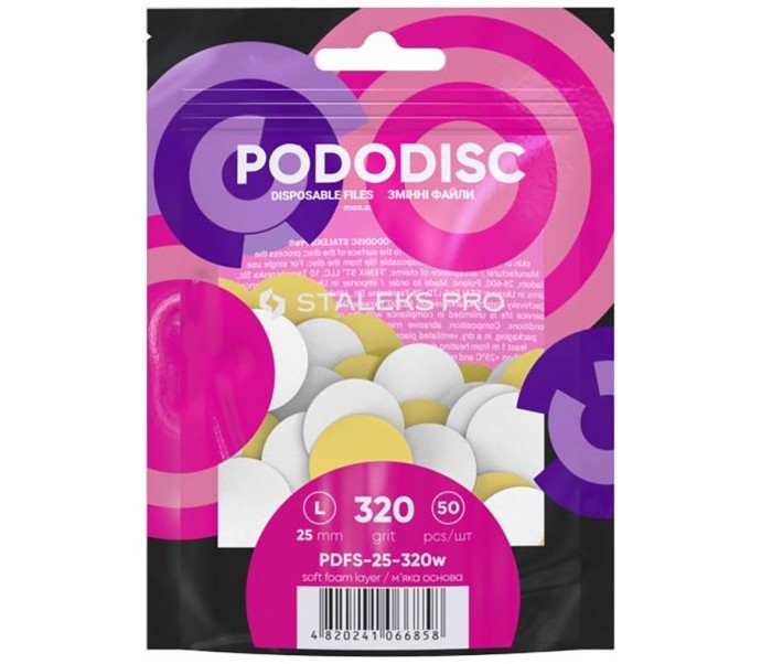 STALEKS PRO Keičiami abrazyvai podo diskui SOFT L dydis 320gr. 50vnt (PDFS-25-320W)