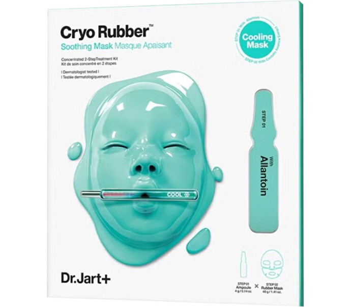 Dr.Jart+ Cryo Rubber™ su raminamuoju alantoinu, 40 g – dviejų etapų guminė veido kaukė su intensyviu vėsinančiu ir raminamuoju poveikiu.